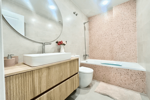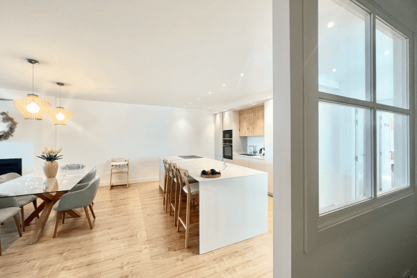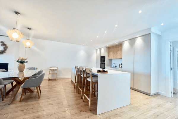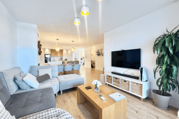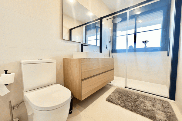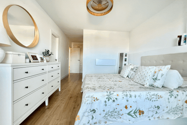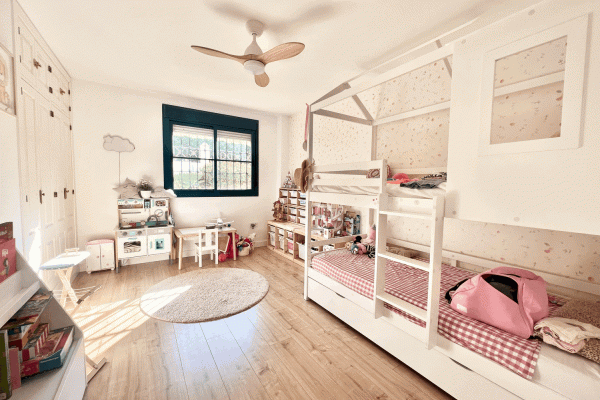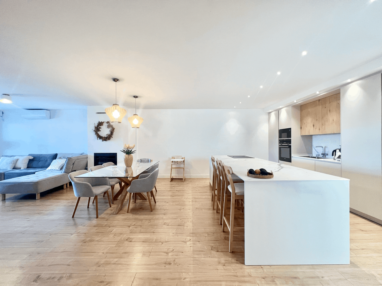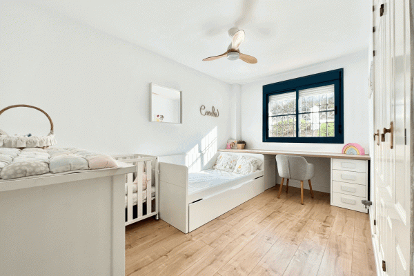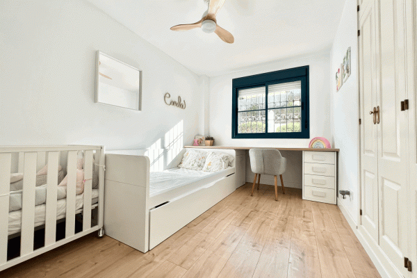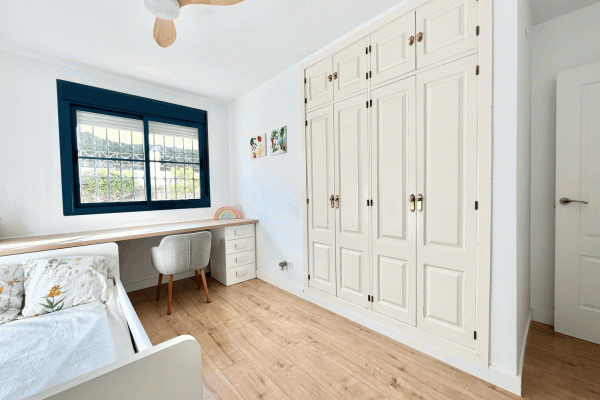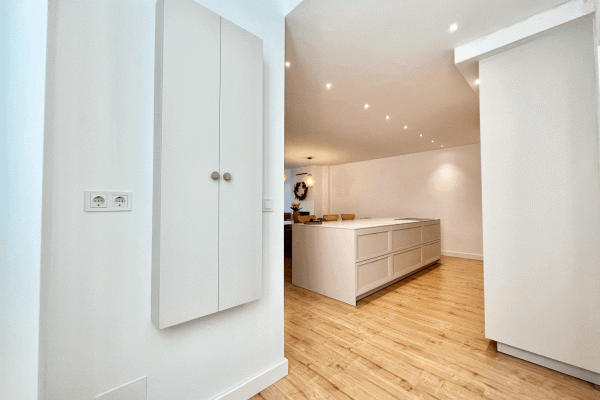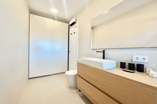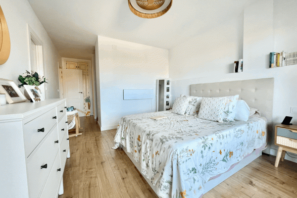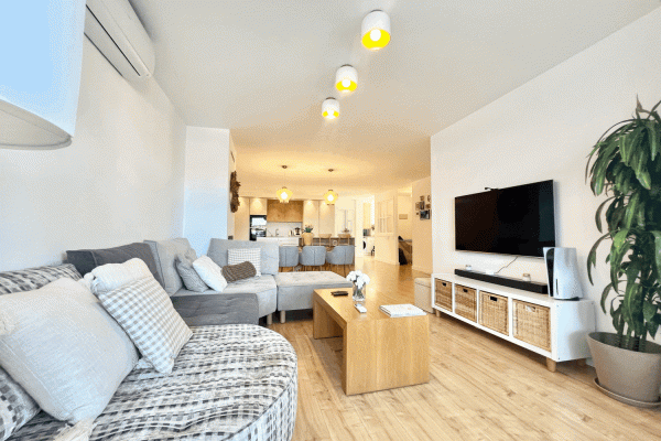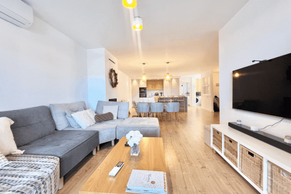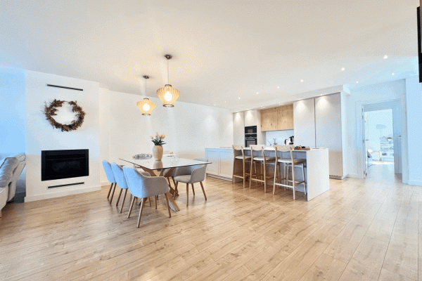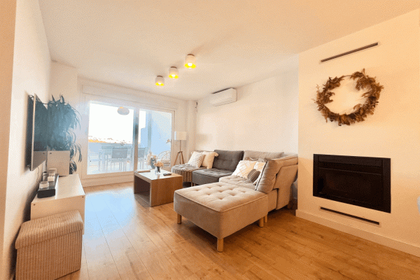 It consists of a beautiful and spacious living-dining room with an electric fireplace and a modern kitchen integrated into the living-dining room. Three bedrooms, one with an ensuite bathroom and direct access to the terrace. Two bedrooms and a family bathroom with a bathtub.