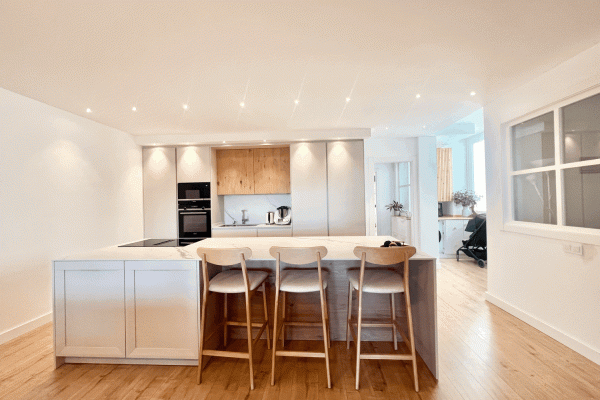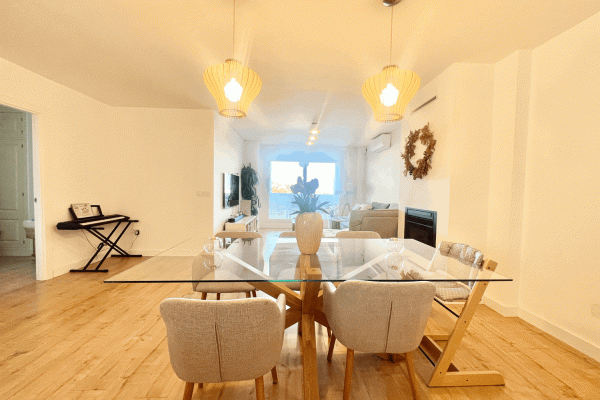 Spectacular ground floor apartment with garden, fully renovated, with three bedrooms and open sea views.